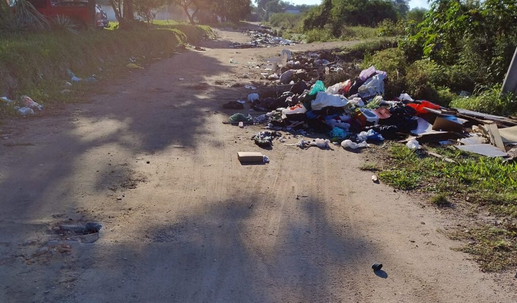 De acordo com o relato, o lixo ocupa parte significativa da pista, o que tem dificultado a circulação de veículos e gerado transtornos constantes para quem precisa transitar pela região. A situação, segundo moradores, se agrava com o passar dos dias, já que novos materiais continuam sendo descartados no mesmo ponto.