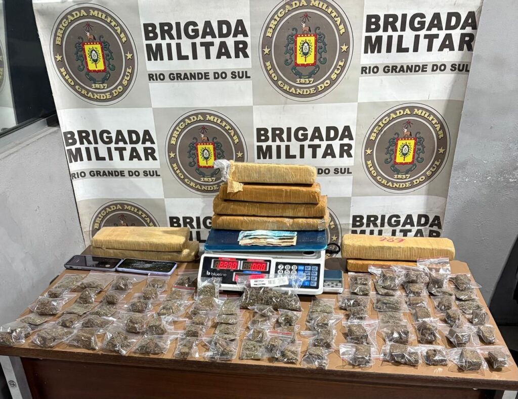 De acordo com informações divulgadas, a prisão ocorreu durante patrulhamento tático motorizado. Na ação, os policiais apreenderam oito tijolos e 79 porções de maconha, totalizando cerca de 7,67 kg da droga.