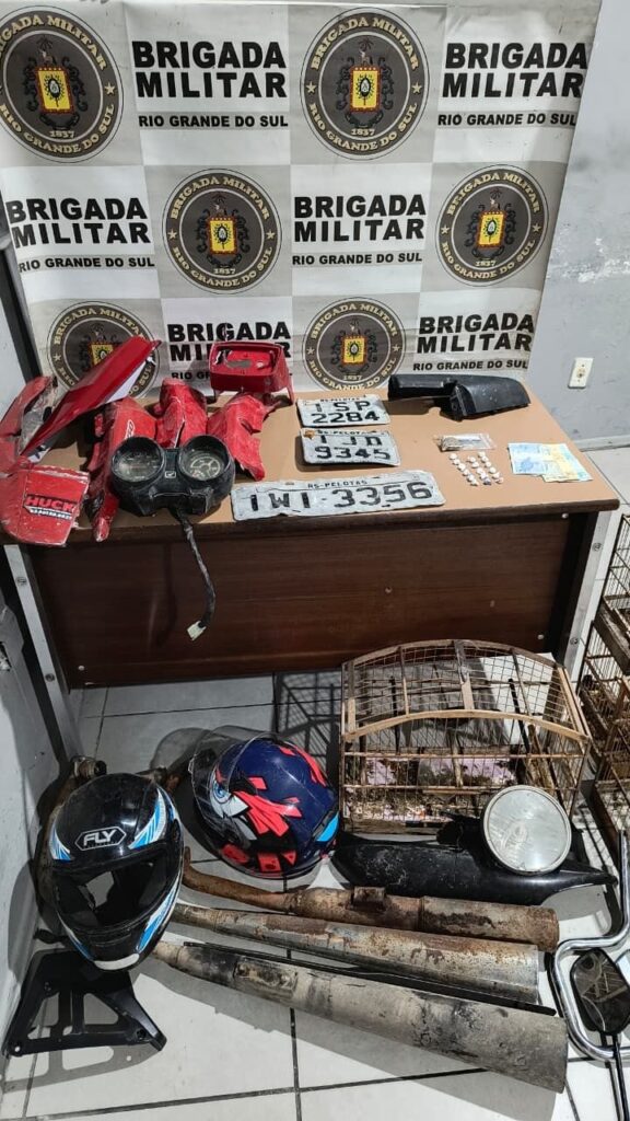 Uma mulher foi presa na tarde deste sábado, 4 de abril de 2026, no bairro Três Vendas, em Pelotas, durante uma ação da Brigada Militar. A ocorrência envolveu crimes como tráfico de drogas, receptação, adulteração de veículo e crime contra a fauna.