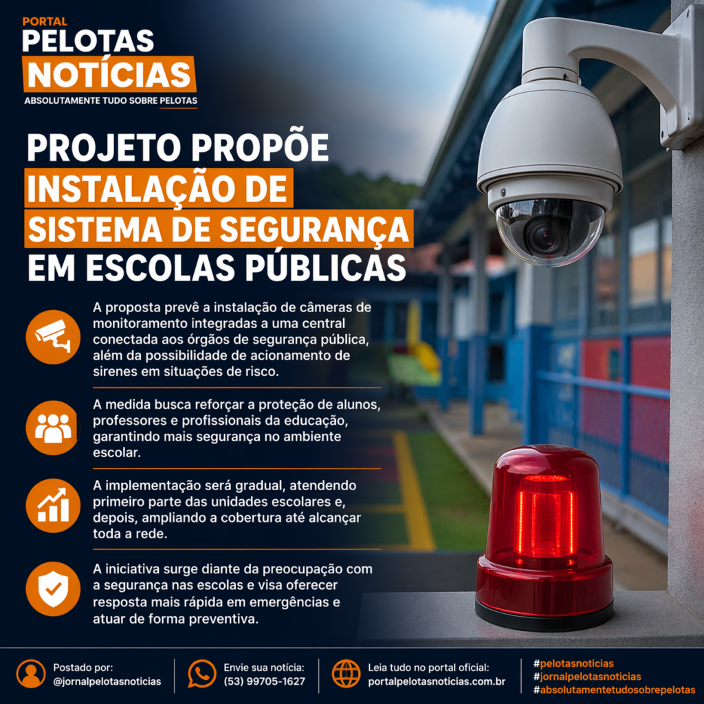 Uma proposta em discussão prevê a instalação de sistemas de segurança em escolas públicas, com o objetivo de reforçar a proteção de alunos, professores e demais profissionais da educação.