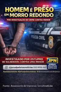 Homem é preso em Morro Redondo por investigação de crime contra menor 2 de abril de 2026 Nenhum comentário Leia mais »