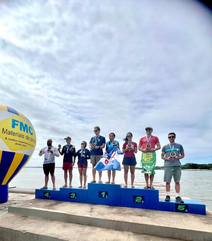 O percurso teve cerca de 3.561 metros e reuniu 64 competidores, que enfrentaram o desafio nas águas da Lagoa dos Patos, em uma prova que exige preparo físico e resistência.